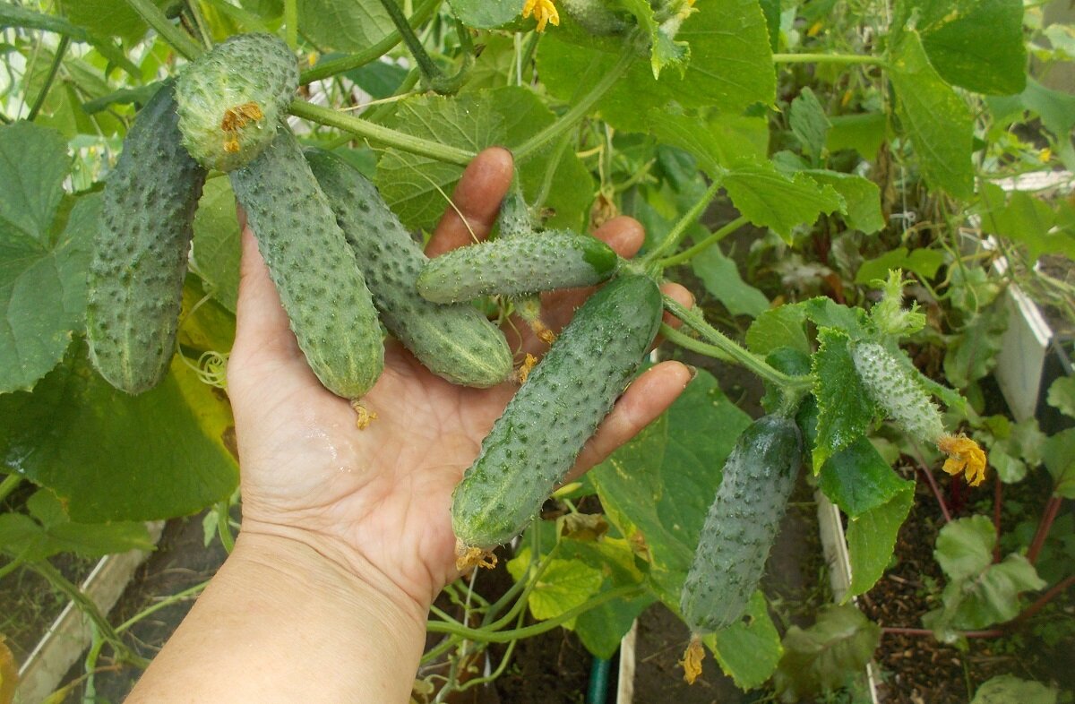 Всхожесть хорошая, в пакете бывает до 10 семян, всё всходят. Выращиваю через рассаду. Трудностей с выращиванием не было, да и на некоторых пакетах нарисовано как формировать правильно огуречный куст, чтобы получить достойный урожай. Первые огурцы созревают примерно через 48 дней после всходов. В одном узле можно насчитать от 5 до 10 завязей. Да и урожай можно снимать до глубокой осени, в отличии от других сортов, у которых через полтора-два месяца заканчивается рост и плодоношение. Главное плоды не перерастают, не нужно торопиться убирать, что много будет переросших, но нужно снимать во время, чтобы быстрей завязывались другие.