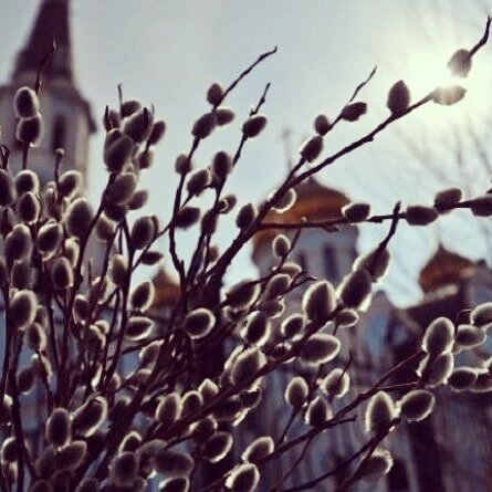 Во времена Петра первого,в столицу привозили пальмовые ветви ,чтобы украсить город и соединиться с древней историей 🌴Со временем верба ,как первое весеннее украшение природы ,стала символом празника на Руси .Воскресение в её честь,назвали Вербным🌿