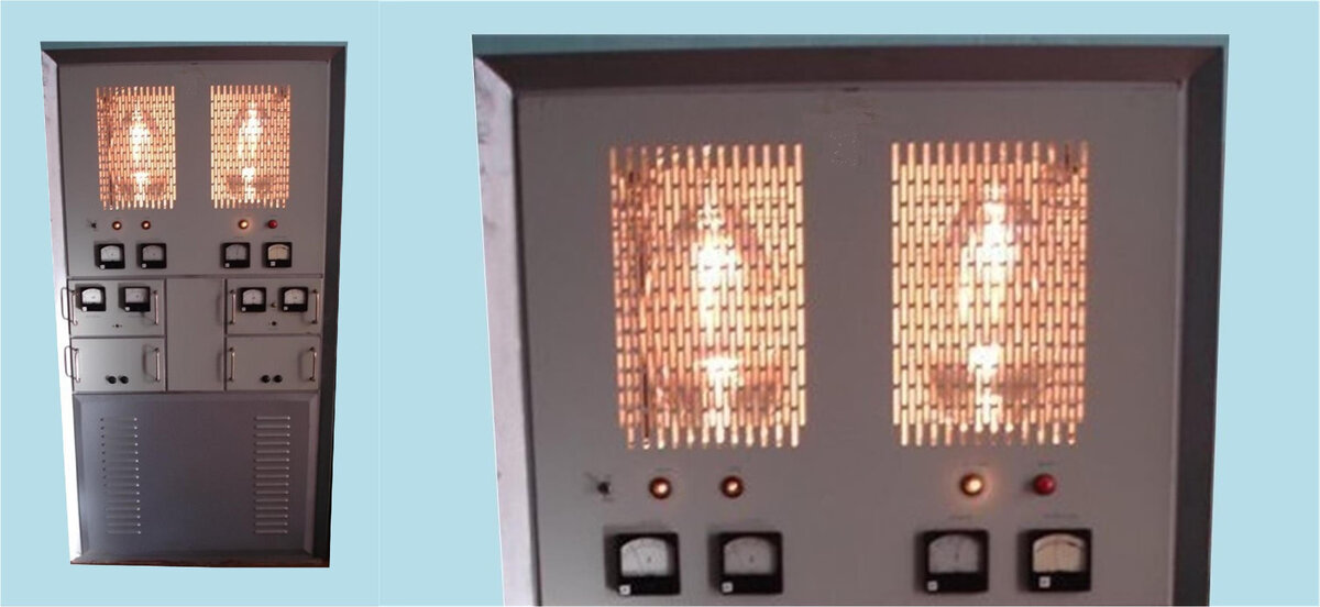 С разными усилителями приходилось работать, но из всех больше всего запомнился УПВ-5. Вот он, красавец, с горящими лампами.