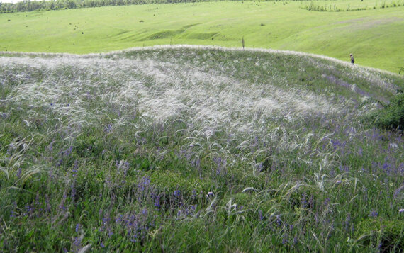 Подует ветер, и берега серебром блестят, то колышется серебристый ковыль, очень редкий для этих мест. Среди серебра красные островки пробиваются, то земляника поспела, которой так много, что косой косить можно.