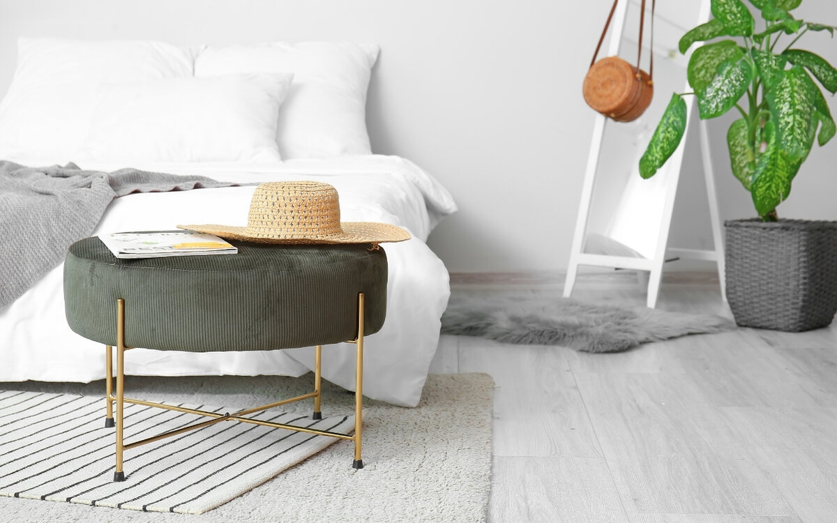 Простота и практичность – главные черты этого стиля. Банкетки, которые к нему относятся, выполнены в сером, черном или белом цветах. Их основа изготавливается из металла или необработанной древесины. «Декораций» материалу не требуется.