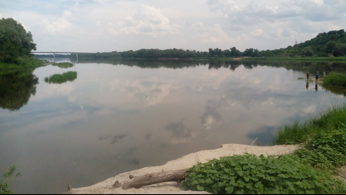 Мы вышли к чистому белому песку на левом берегу, где суша вдаётся в самую реку небольшим пологим полуостровом – это и была Старая Переправа. Название столь удивительно красивому месту подарило его прошлое. Здесь существовал Понтонный переезд через некогда судоходную реку Дон. Для прохода судов мост раздвигался буксирами. Теперь же, над Доном протянулся добротный, бетонной конструкции мост, немногим ниже по течению. И со Старой Переправы он прекрасно виден.