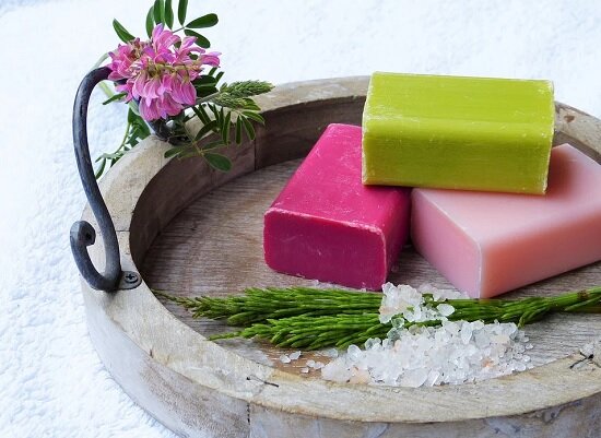 - В Древней Греции, где мыло было широко известно, в него иногда добавляли натуральные красители. Таким продуктом можно было пользоваться не только для мытья, но и для окраски волос, а также придания коже здорового оттенка.