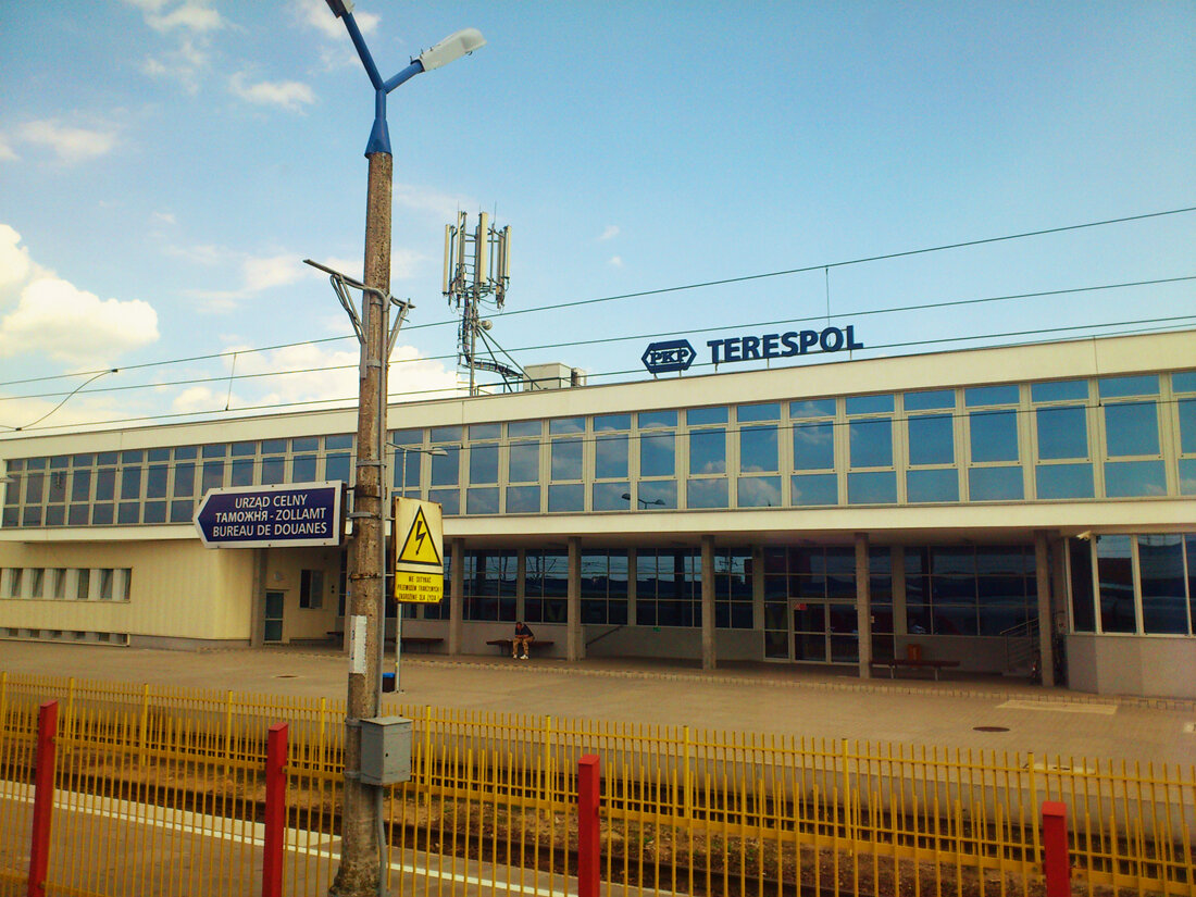 Тересполь[tɛˈrɛspɔl] - город на востоке Польши на границе с Беларусь . Расположен на пограничной реке Буг , прямо напротив города Брест, Беларусь . Население - 5794 человека (2014 г.).С 1999 г. Тересполь является в пределах Бяла-Подляского уезда в Люблинского воеводства . С 1975 по 1998 год он принадлежал Бяла-Подляскому воеводству . Город является оживленным пограничным переходом между Польшей и Беларусью на европейском маршруте E30 , который соединяет Берлин - Варшава - Минск - Москва . Другой переход в Брест находится в Кукурыки северо-западнее Тересполя. Есть также пригородный поезд между Брестом и Тересполем. Приходит 3 раза в день. Поездка занимает 18 минут и является очень удобным способом пересечения границы между Беларусью и Польшей .
