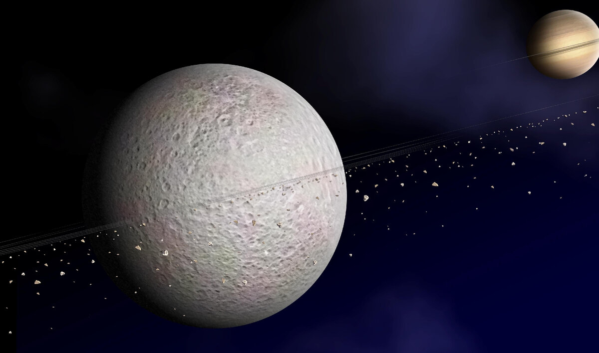Художественное изображение колец Реи. Иллюстрация: НАСА, общественное достояние