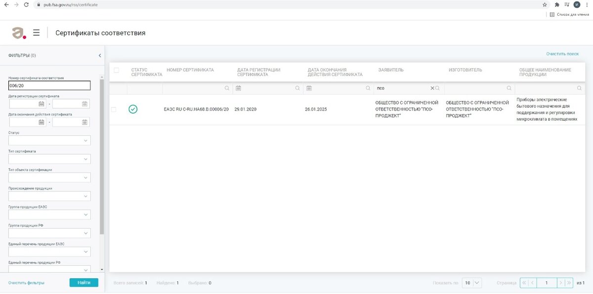 Совет первый. Проверьте сертификат соответствия по специальной базе. Сделать это просто. Заходим на сайт https://pub.fsa.gov.ru/rss/certificate и в поле «Номер сертификата соответствия» (в верхнем левом углу) вбиваем последние шесть цифр из сертификата, прилагаемого к товару. Далее в поле «Изготовитель» указываем название производителя.