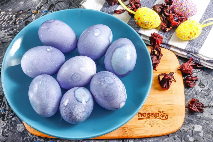 Извлеките яйца, обсушите и смажьте немного растительным маслом для дополнительного блеска.