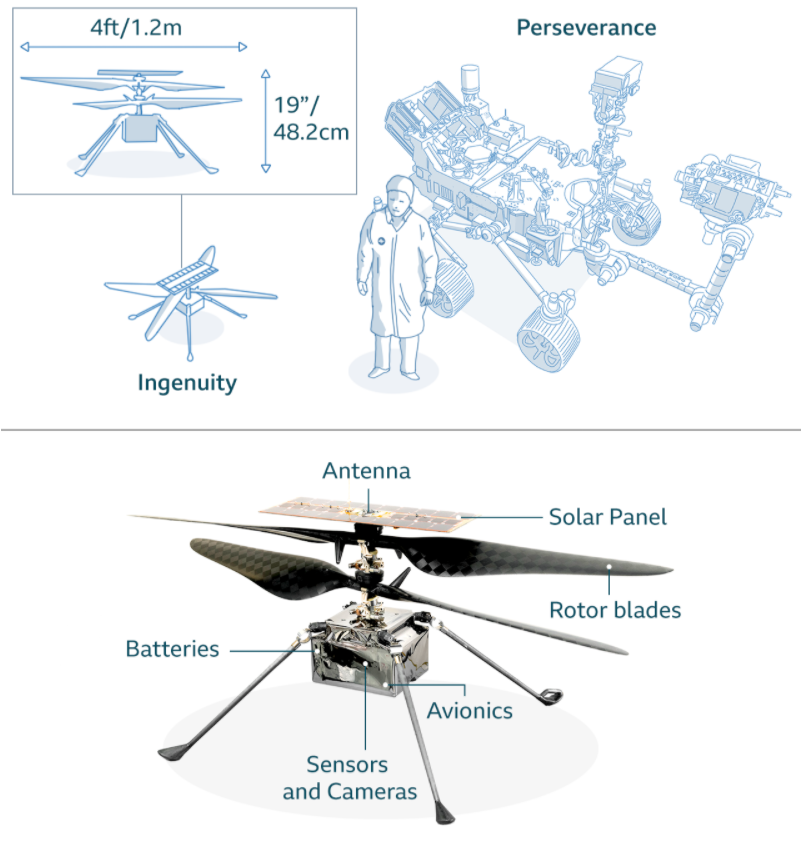 Вертолет был доставлен на Марс марсоходом НАСА "Настойчивость", который приземлился в кратере Иезеро в середине февраля.