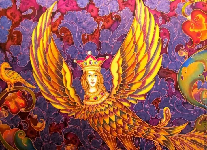 Первоначально — из восточной (персидской) мифологии. Изображалась с женской головой и грудью. Собрание мифов «Песни птицы Гамаюн» повествует о начальных событиях в славянской мифологии — сотворении мира и рождении языческих богов. Слово «гамаюн» происходит от «гамаюнить» — баюкать (очевидно, потому, что эти легенды служили также сказками детям на ночь). В мифологии древних иранцев есть аналог - птица радости Хумаюн. «Песни» делятся на главы — «Клубки».