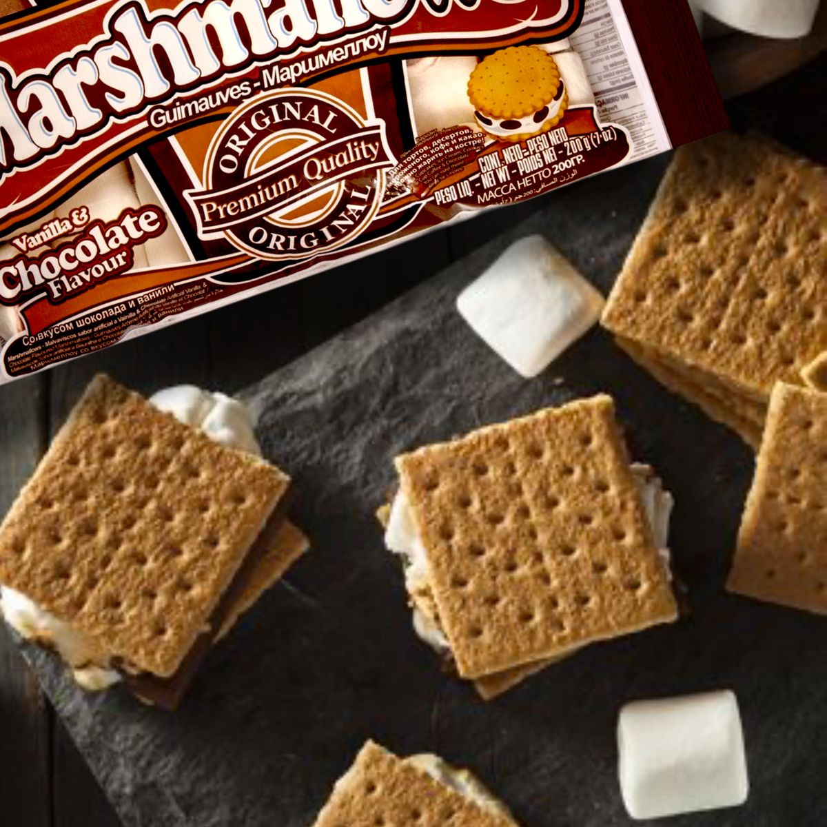 Сочетание хрустящего печенья, нежнейшего расплавленного маршмеллоу и чёрного шоколада — невероятно соблазнительное и очень вкусное. К тому же получается два в одном – и десерт, и развлечение, ведь готовить сморы увлекательно, весело и невероятно просто.