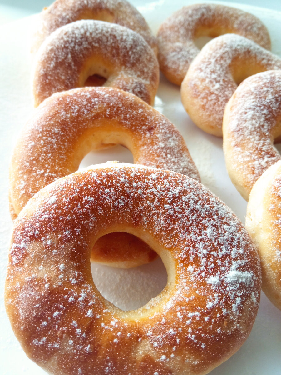 Готовые и остывшие бублики посыпаю сахарной пудрой