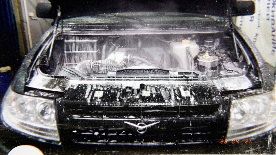 Самое первое, что нужно сделать это дать двигателю остыть, а потом уже начинать мойку. Желательно вытащить клеммы аккумулятора и закрыть важные элементы полиэтиленовой плёнкой например генератор, катушки зажигания и клеммы , а воздухозаборник двигателя и труднодоступные места – фольгой.