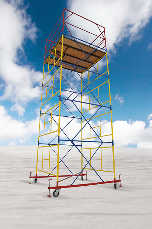 - Стандартная вышка-тура предназначена для установки на ровную поверхность, но есть модели, которые специально разработаны для работы на нестандартных объектах. Например, на лестничных маршах.