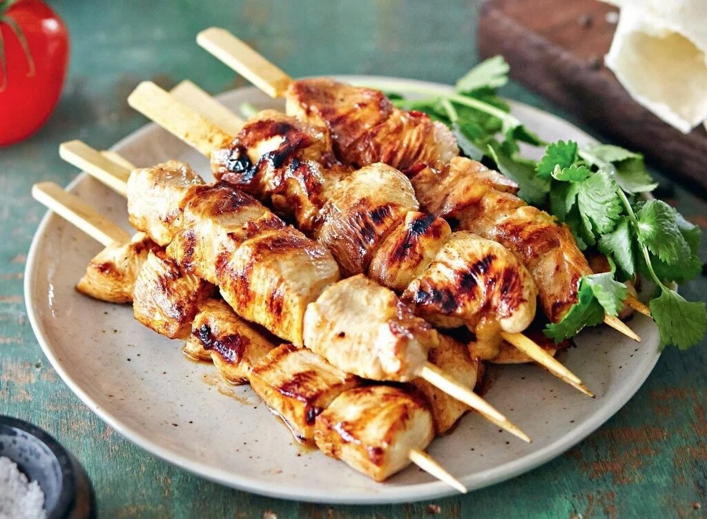 🔷Шашлык должен получиться красивого золотистого цвета. Не забудьте один раз перевернуть шпажки.