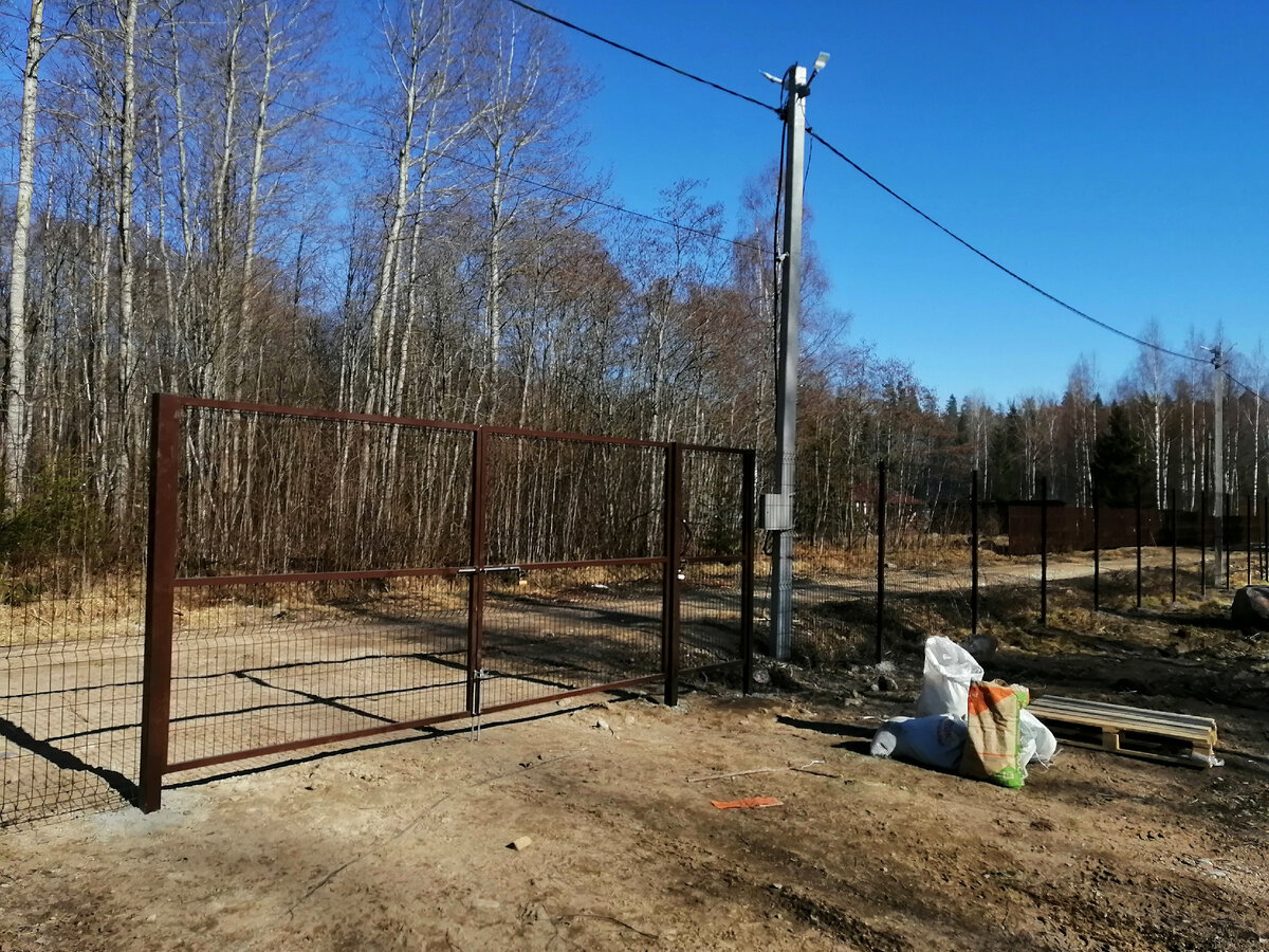 Дача у меня располагается практически в лесу и поэтому приход кабанов на участок это совсем не редкое дело. Естественно страдают посадки и грядки. Будем строить забор. Естественно не только от диких животных. Изначально планировал с фасадной стороны глухой забор из профлиста, но вот цена его оказалось совсем не подъемной. Да к тому же мой участок довольно большой, поэтому я принял решение, что забор будет из прочной 3D сетки и высотой 2 метра. Сетка коричневого цвета RAL 8017 Пруток толщиной 4 мм Ворота шириной 4 метра. Распашные. С проушинами под замок и шпингалетами. Калитка в рамке, шириной 1 метр. Все с заполнением сеткой. Врезные замки я сразу забраковал. Зимой может попасть вода и его будет просто не открыть. Про навесные замки из СССР я писал в статье. Именно они будут на этом заборе. Важным было то, что бы ограда была не только прочная, но и красивая. Поэтому при монтаже стояла задача сделать уровень по верхней кромке. Выставили ворота и пошли по уровню. Так же я снял небол