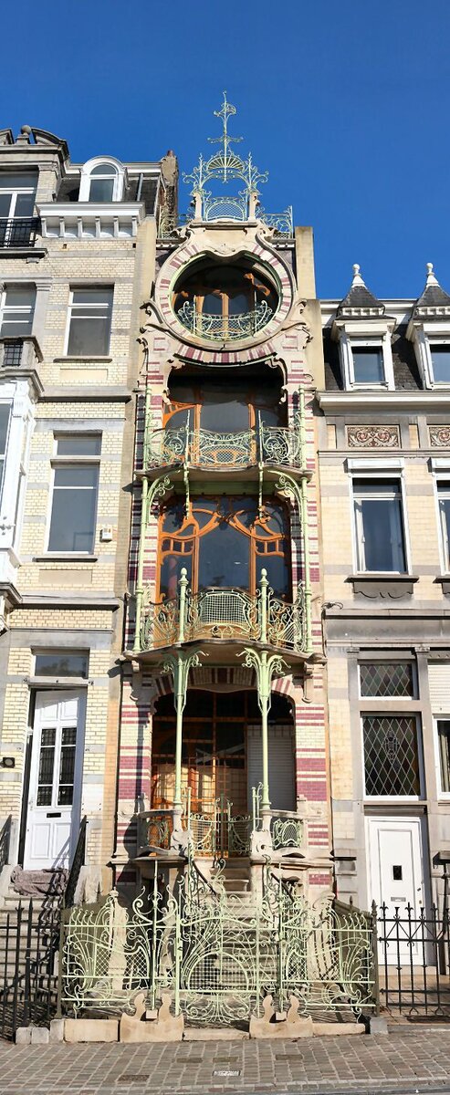 В посте про 1895 году в искусстве я писал про дом Тасселя, автором проекта которого был бельгийский классик ар нуво Виктор Орта. А теперь давайте посмотрим на работу его ученика Гюстава Стровена ( или Штровена в голландской транскрипции) Здание, известное сегодня как Maison Saint-Cyr (Дом Сен Сир) построено в 1901-1903 годах в Брюсселе в стиле ар нуво по заказу художника Жоржа Де Сен Сира. Здание было предназначено для размещения мастерской художника. Когда я первый раз увидел это здание, я не поверил, что оно реально такое узкое, ведь ширина фасада - всего 4 метра. Да, я понимаю, что есть в Японии и горячо любимом мной Лондоне здания и поуже. Но все равно, увидеть такое, тем более со столь богатым декором, для меня было в диковинку. Сохранились поэтажные планы здания, где показаны расположения комнат и лестниц. Опять же, здание было не жилым, а большие окна обеспечивали хорошее освещение холста при работе, и раскрывали всю красоту уже готовой картины перед заказчиком или покупа