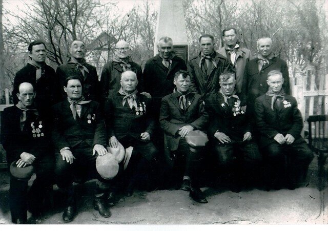 На снимке из 70-х: здесь они еще живы, фронтовики из мого села Пятерыжск. И почти о всех из них я успел написать в районной газете "Ленинское знамя", в которой тогда работал.