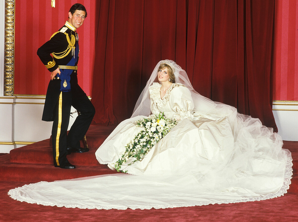 Платье, созданное Дэвидом и Элизабет Эмануэль для свадьбы леди Дианы Спенсер и принца Уэльского в 1981 году, будет продемонстрировано вместе с инкрустированным пайетками шлейфом длиной 25 футов (7,6 м) - самым длинным в королевской истории.