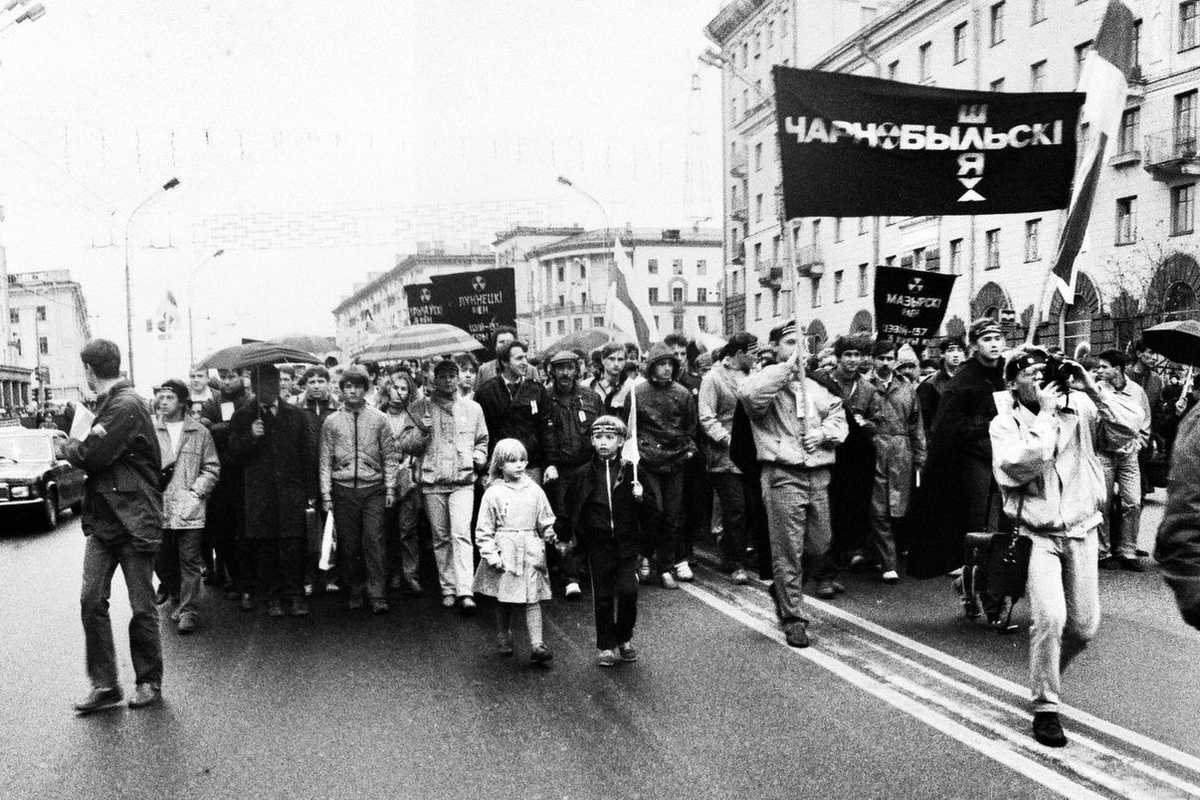Первая акция оппозиции, приуроченная к трагедии, состоялась, как ни странно, не в 1986-м, а спустя три года после аварии – 26 апреля 1989 года. Как пишут оппозиционные СМИ, мероприятие не было санкционировано и потому проходило в формате траурного молчания в Минске на площади Ленина (сейчас – площадь Независимости). Организатором выступило антикоммунистическое, националистическое движение Белорусский народный фронт за перестройку «Адраджэньне», которое в 90-е преобразовалось в ныне известную партию БНФ. В том же году, 30 сентября, БНФ провел свой первый «Чарнобыльскі шлях», который он повторил 26 апреля 1990 года. И после этого, что опять вызывает удивление, шествия прекратились вплоть до 1996 года. А с 1996 года вновь стали проводиться ежегодно до настоящего времени.