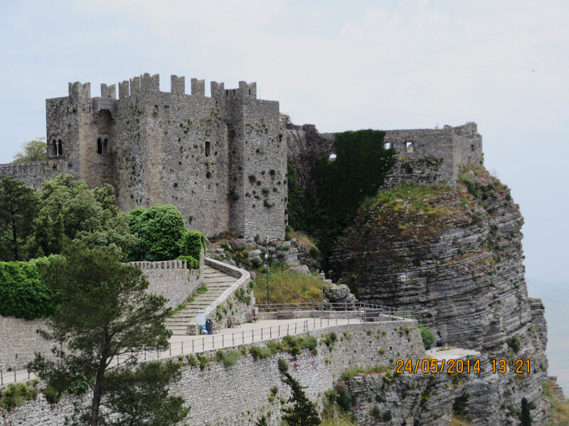 Италия, Сицилия, Эриче Замок так называется, потому что когда-то на этом месте был римский храм Венеры. А ещё раньше – греческий храм Афродиты. Сам замок построили норманны, уже вполне христиане, но название осталось. Замок расположен на высокой горе, как и весь старинный город Эриче. Крутой обрыв, внизу – цивилизация и XXI век. А здесь, наверху – седая древность. История Про замок Венеры известно до обидного мало. Он был построен по приказу Великого графа Сицилии, не очень понятно, которого точно. Может, это был Рожер Отвиль, может, его сын Симон или внук Рожер II. Это самый конец XI-го или самое начало XII века. Здесь располагалась графская администрация, управлявшая западной частью Сицилии. Позднее, в 1167 году при короле Джильемо Добром замок был дополнительно укреплён и продолжал выполнять свои функции. Во время Войны Сицилийской вечерни (конец XIII – начало XIVвека) замок Венеры был одной из главных фортеций короля Федериго из Арагонской династии. Который, кстати, в этой войне и