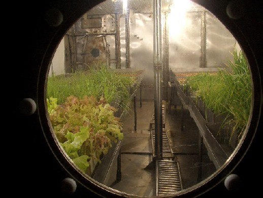 Тогда исследователям пришла в голову мысль: а что, если съедобные высшие растения научить расти так же быстро, как водоросли. Так в системе стали появляться пшеница, овощи, зелень, чуфа, которые стали источником полноценной растительной диеты. Селекционеры вывели быстрорастущую пшеницу с коротким стеблем, чтобы сократить объем несъедобных отходов. Скорости прироста оказались соизмеримы с водорослями. Потом поняли: для таких огородов совсем не обязательно использовать почву. Проблема почвы в том, что в ней развиваются микроорганизмы, рост которых плохо контролируется. Чтобы от этого уйти, стали минимизировать контакт с почвой, питать корни воздушно-капельной смесью. Теперь мы знаем эти технологии как аэропонику и гидропонику. В таких супертепличных условиях добились высокой продуктивности — для пшеницы до семи урожаев в год. Нужно помнить, что речь идет об изолированной системе с идеальными условиями по освещенности, температуре и питанию.