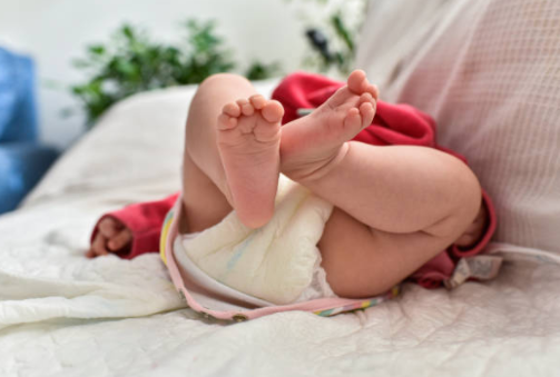 Если кожа ребенка негативно реагирует на подгузники, то высыпания появляются не на попе и половых органах, а между и вокруг ножек, на талии.