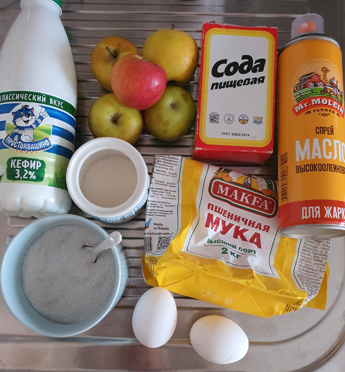 Утром, особенно в выходные, побалуйте своих близких чем-нибудь сладким, нежным, ароматным. Приготовленные по данному рецепту оладьи получаются нежными с тонким ароматом яблок. Ешьте их с сахарной пудрой, медом, вареньем... Вкусно! Ингредиенты: - яблоки 200 грамм в натертом виде - кефир - 1 стакан - яйца куриные 2 штуки - мука пшеничная 1 стакан - соль 0,5 чайной ложки - сода 0,5 чайной ложки - сахар 1 столовая ложка - масло растительное 5 столовых ложек Яблоки очистить, помыть, натереть на мелкой терке. Яйца смешать с сахаром и солью. Добавить кефир и соду. Хорошо перемешать, добавить натертые яблоки. Добавить муку к яичной массе. Все хорошо перемешать. Тесто получается как густая сметана. Разогреть сковороду, налить растительное масло. Столовой ложкой выложить оладушки. Выпекать на среднем огне до золотистого цвета, сперва с одной стороны около 2 минут. Затем перевернуть и так же печь с другой стороны. Приятного аппетита! Жду ваших комментариев, буду рада лайкам и п