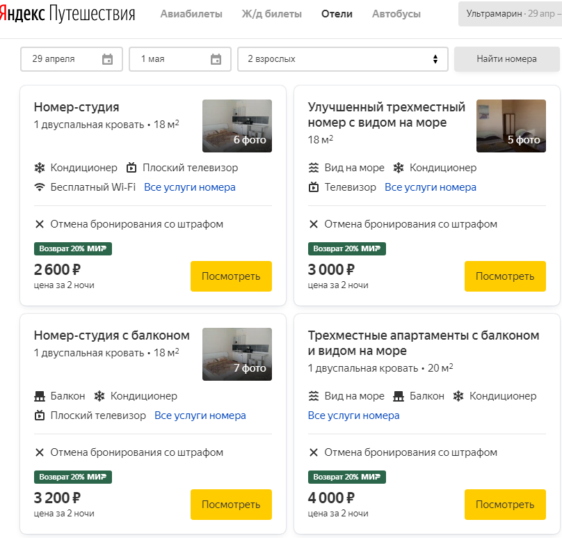 Яндекс Путешествия https://travel.yandex.ru
