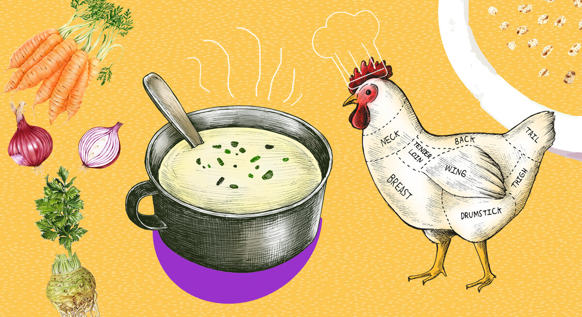 В далёком 2005 году я училась на программе «Маса» при Еврейском университете в Иерусалиме. Первые несколько недель мы ели в кафе, потом посмотрели на цены, на нашу стипендию и решили покупать продукты в продовольственном магазине на территории общежития. Потом посмотрели на цены, на нашу стипендию и решили делать покупки в большом супермаркете. Программа длилась 10 месяцев, мы выживали как могли: освоили покупки на рынке и научились минимально готовить. Весной в гости приехала мама, которая пообещала приготовить мне что-то вкусное по моей просьбе. Я сказала, что хочу только куриный бульон. И если меня попросят составить рейтинг лучших бульонов в моей жизни, то этот войдёт в пятёрку. К слову, если вечер в компании друзей перестал быть занимательным или вам срочно понадобилась беспроигрышная тема для разговора — попросите каждого рассказать историю о лучшем бульоне в его жизни.