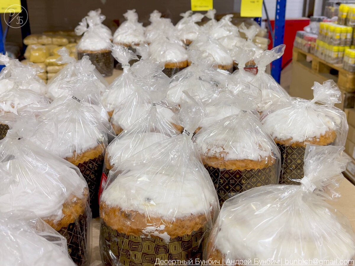 Недавно был в “Светофоре” в поисках сладостей, которые не страшно есть и можно купить за копейки. Пока их искал, обнаружил огромную палету с пасхальными куличами. Когда взглянул на цену, понял, что надо срочно брать этот кулич на обзор. Но о цене я расскажу чуть позже, а сейчас предлагаю взглянуть на сам кулич.