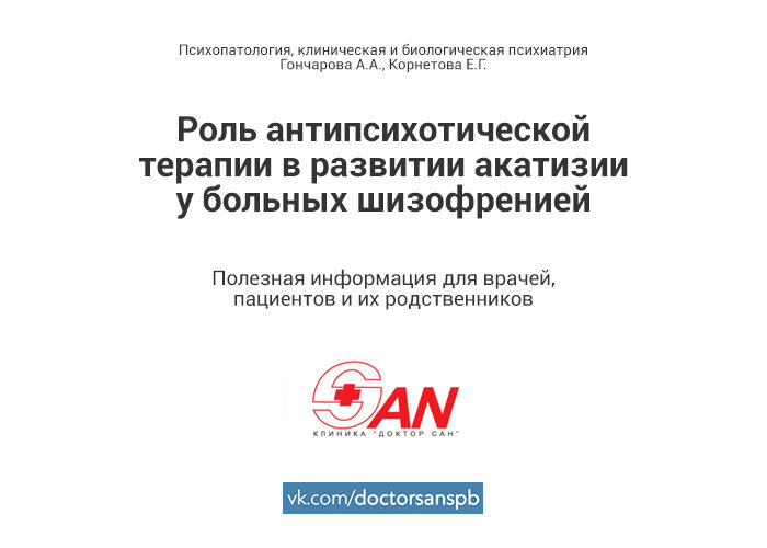 Шизофрения — мультифакториальное психическое расстройство, основным методом лечения которого является длительная терапия препаратами из группы антипсихотиков, что неотъемлемо связано с развитием ряда нежелательных явлений. Одним из самых распространенных двигательных побочных нарушений у больных шизофренией в психиатрической практике является акатизия. Она представлена сложным клиническим феноменом, включающим в себя объективный (двигательный) компонент с преимущественной локализацией в нижних конечностях и субъективный, который чаще проявляется чувством внутреннего дискомфорта, напряжения и беспокойства. Акатизия затрагивает не только клинико-динамические аспекты шизофренического процесса, но и поведенческие паттерны пациентов. Частота ее встречаемости у больных шизофренией на фоне терапии антипсихотиками варьирует в достаточно широком диапазоне: от 8% до 76%, что связывают с использованием конкретных препаратов и их фармакологическим профилем. Проводимые исследования демонстрируют, что применение КАП повышает риск развития акатизии в сравнении с ААП, что находит свое отражение в высокой частоте ее встречаемости на фоне приема галоперидола, который выступает по-прежнему эталонным препаратом в терапии больных шизофренией и достигает 57–75%.