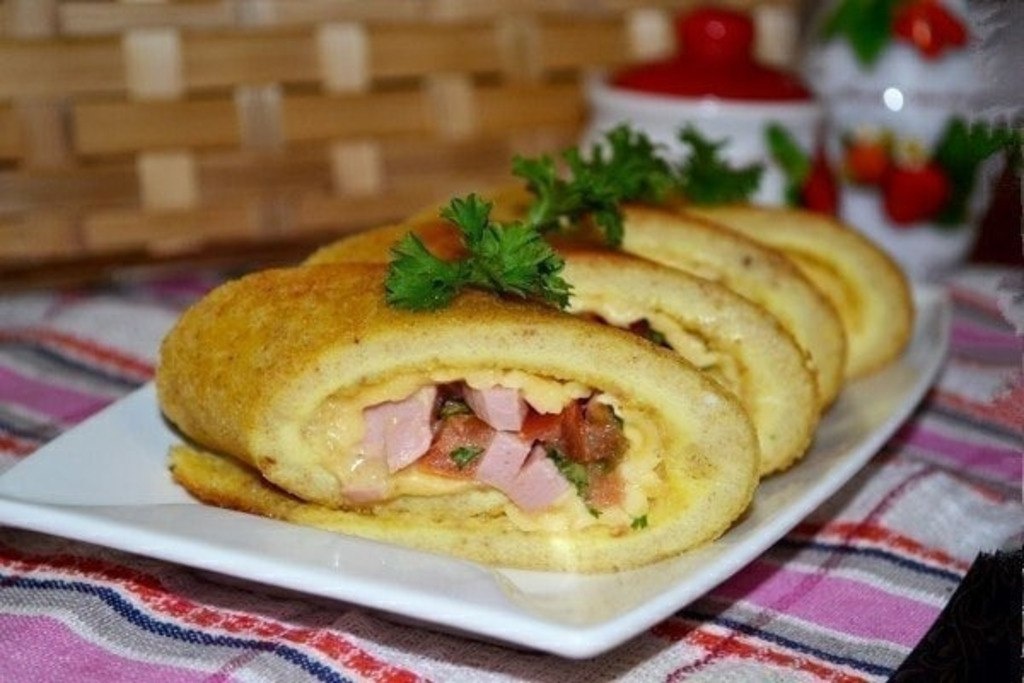 Нарезаем рулет не очень широкими кусочками и зовем всю родню скорее к завтраку.