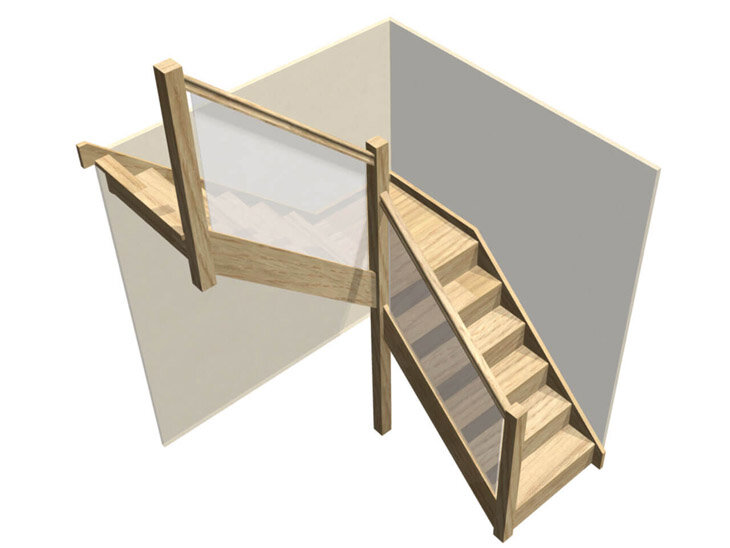 Это достигается за счет проделанной пазов в каждой ступеньке и подступенке, а также в стойке и поручне, в которые вставляется стекло.