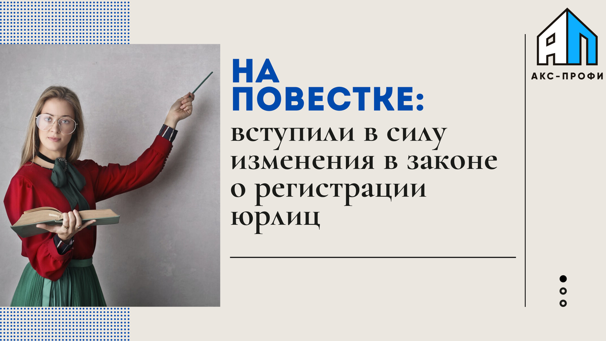 Главное изменение состоит в том, что увеличен срок уведомления регистрирующего органа об изменении сведений, содержащихся в ЕГРЮЛ: теперь это срок будет составлять 7 рабочих дней со дня