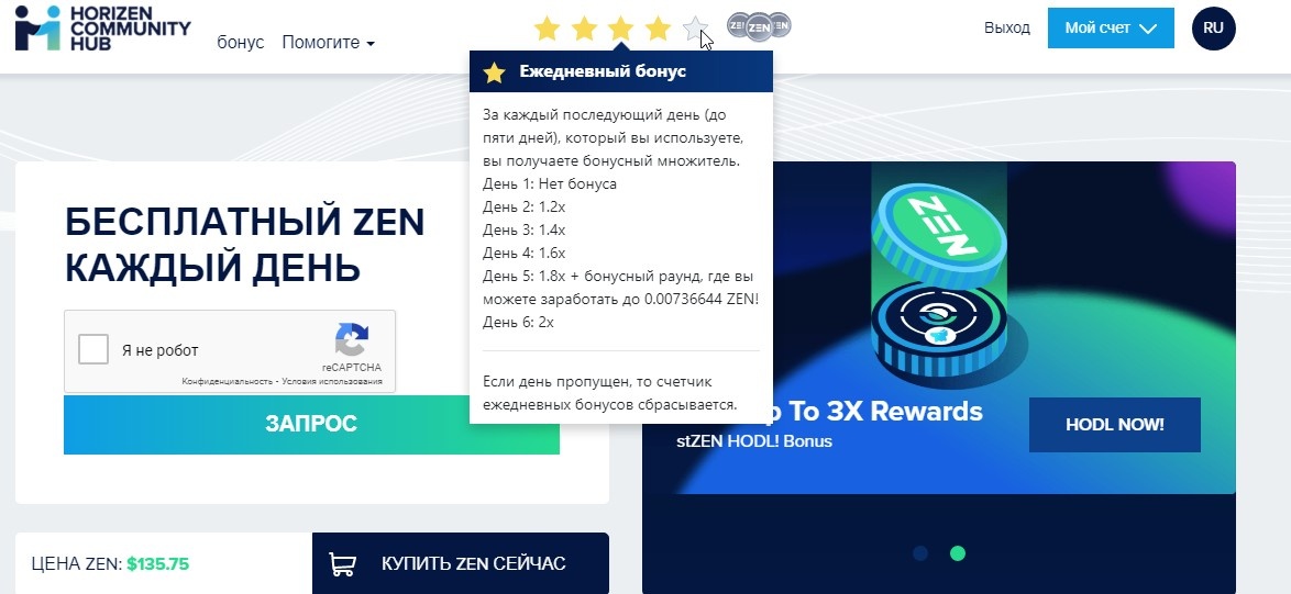 Кран дает раз в сутки Zen на любой ваш кошелек, я лично использую в качестве кошелька биржу Binance.