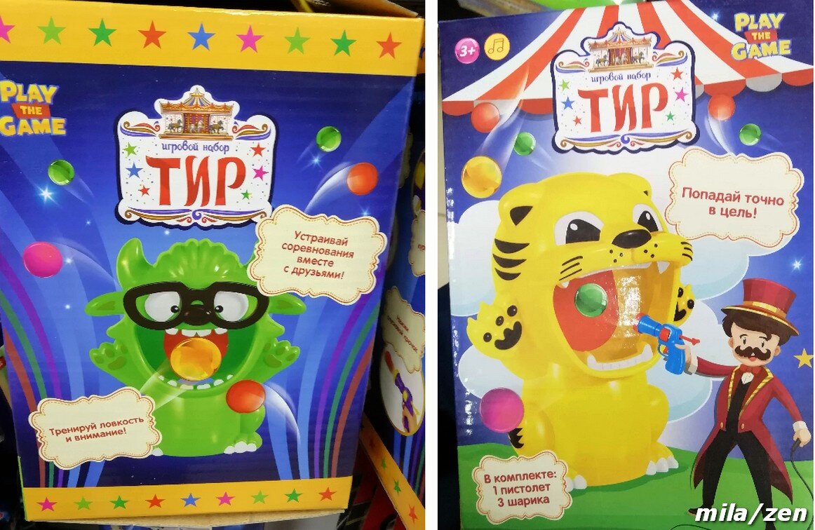 В магазине мне очень понравился Тир. В комплекте пистолет, шарики и мишень. Если вставить батарейки, то при попадании в цель будет звук. Насколько громкий, не знаю. Коробку не вскрывала. Цена 249 рублей.