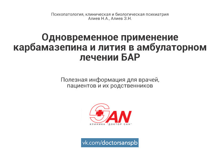 ОДНОВРЕМЕННОЕ ПРИМЕНЕНИЕ КАРБАМАЗЕПИНА И ЛИТИЯ В ЛЕЧЕНИИ АМБУЛАТОРНЫХ ПАЦИЕНТОВ С БИПОЛЯРНЫМ РАССТРОЙСТВОМ