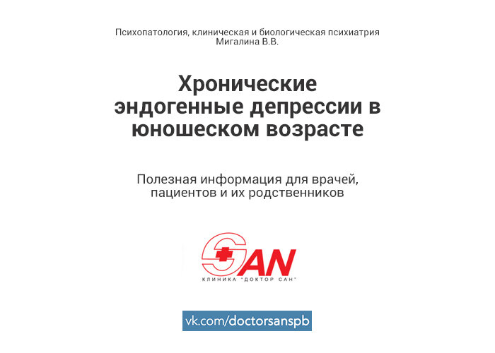 Депрессия является одним из ведущих по заболеваемости состояний и одной из основных причин инвалидности в мире. По данным ВОЗ, на 2017 г. депрессией страдают около 33 млн человек. Несмотря на значительный интерес ученых и большое количество проведенных исследований, посвященных депрессии, в том числе вопросам терапии, примерно у 20–35% всех пациентов с большим депрессивным расстройством развивается хроническое течение. Заболевание может растягиваться на многие годы и достигать 20–25 лет. По сравнению с нехроническими формами, длительная депрессия связана с увеличением сопутствующих психических расстройств, суицидальных попыток, резистентности к терапии, а также менее благоприятным прогнозом, худшими социально-экономическими условиями, уровнем образования и значительными финансовыми затратами в сфере здравоохранения, что делает эту проблему одной из наиболее актуальных. Подробнее о депрессии: https://doctorsan.ru/lechenie-depressii Источник: https://vk.com/doctorsanspb?w=wall-146777962_