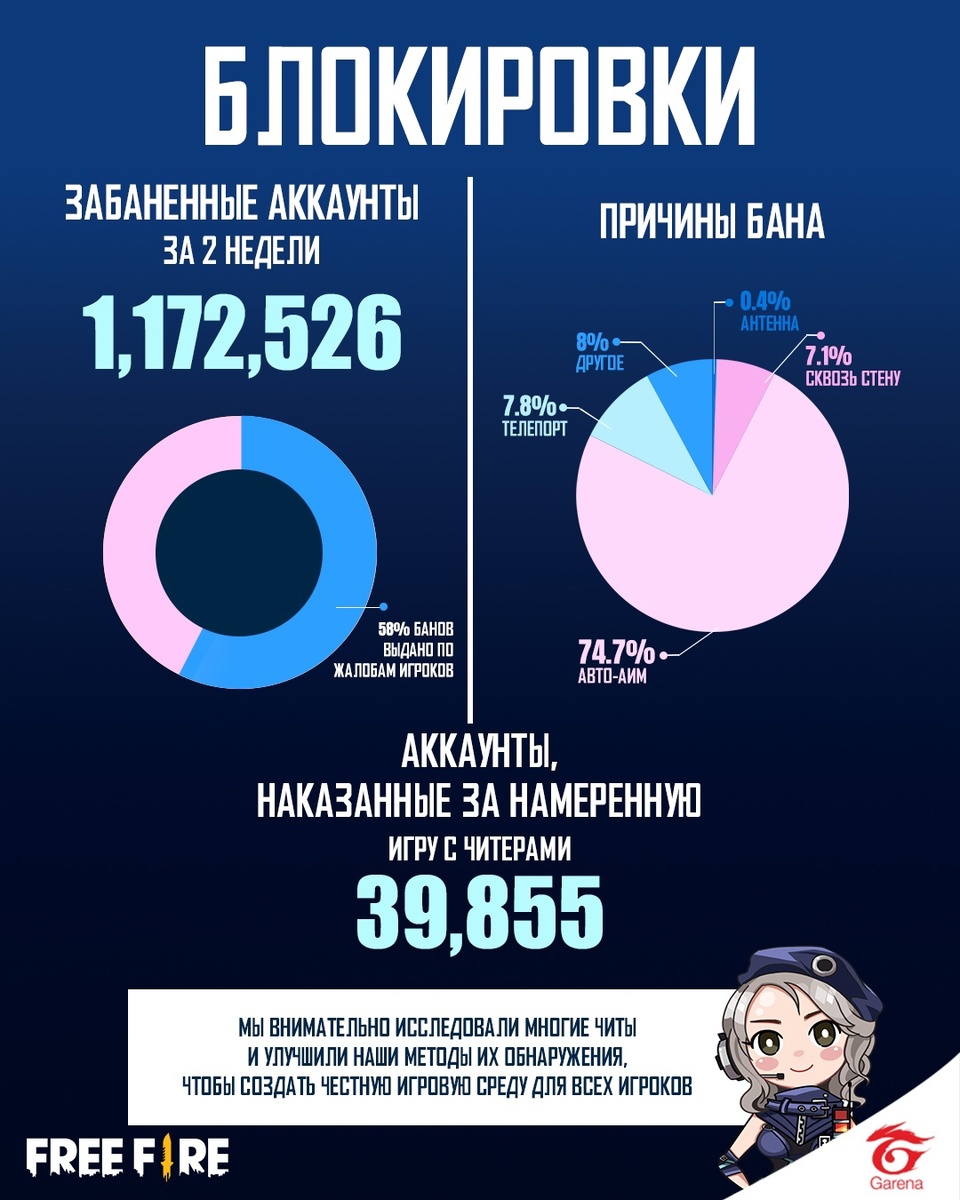 За последние две недели мы заблокировали 1,172,526 аккаунтов по всему миру, причем 58% из них были заблокированы по жалобам игроков.
