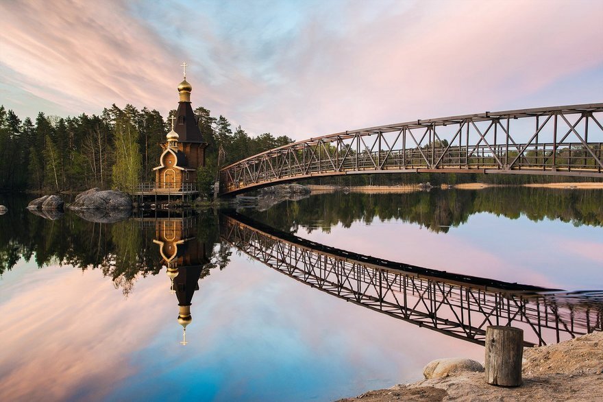 На одном из скальных выступов, омываемом со всех четырёх сторон водами Вуоксы, высится одно из настоящих чудес Ленинградской области Издалека кажется, будто бы здание, построенное по всем канонам древнего зодчества, стоит прямо на водной глади. При ближайшем рассмотрении оказывается, что храм разместился на крошечном острове. Церковь эта известна всему миру, ведь она занесена в Книгу рекордов Гиннесса как единственная в мире церковь, построенная на ограниченном участке земли.