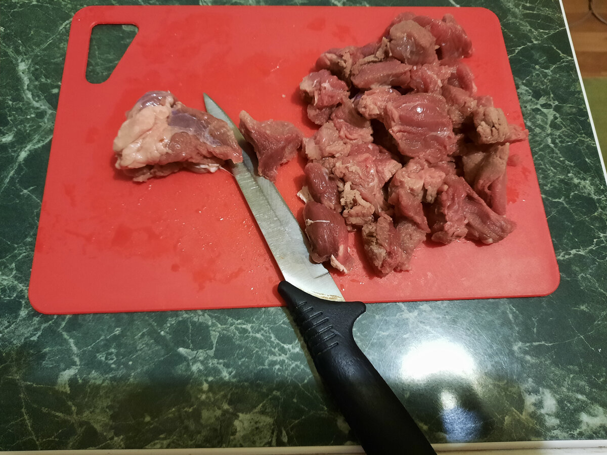 - Нарезаем мясо на небольшие кусочки.
