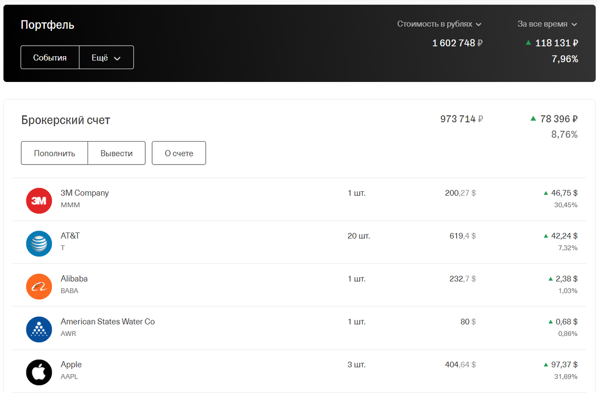 К сожалению, весь основной рост фондового рынка после мартовской коррекции я пропустил. В апреле только открыл брокерский счет, начал понемногу вникать, а инвестировать начал где-то с июня, когда все технологические компании торговались уже крайне дорого. Получилось немножко поспекулировать с нефтяными и авиа компаниями, тогда они еще были дешевые. Но это была моментная возможность, которая дала примерно 1000$; основной акцент делаю на долгосрочные инвестиции.