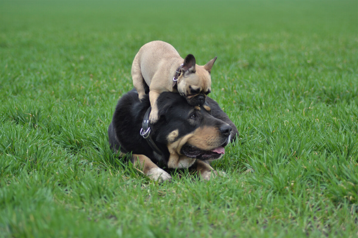 Поговорим немного о дамских делах. Наверное ни для кого не секрет, что бывает определенная пора в жизни девочек-собак, когда организм подсказывает, что пора обзаводится детишками. У кого то это бывает раз в год, у кого-то два. Это очень хорошо передается по наследству, так что спросите заводчика про маму. Суки становятся необыкновенно ласковые, какие-то загадочные. И конечно в это время кобели им все прощают. Наши даже пайку свою отдают и с обожанием смотрят, как дамы поглощают их обед. Наши девочки отличаются отменным аппетитом, они даже в родах умудряются подкрепится)). А вот ухаживания кавалеров дамы весьма жестко отвергают на начальном этапе. На фото Миша и 10 месячная Сара в интересном состоянии. Дама разумеется закрыта, но Миша весьма заинтересован. Как вести себя с сукой в этом состоянии? Да так же как и обычно. Иначе она потом привыкнет и веревки будет из вас вить. Ничего не происходит сверхъестественного, наоборот все естественно. Если вы собираетесь свою даму вязать, то дол