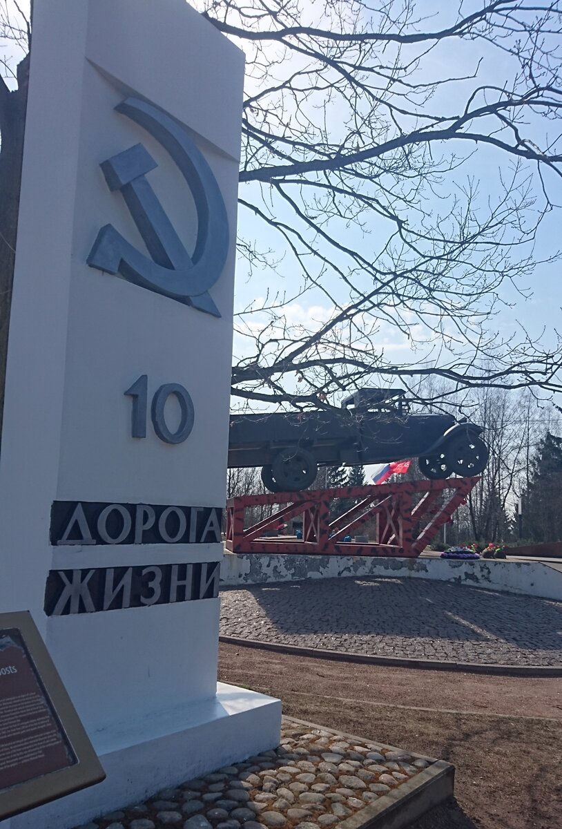 Этот памятник стоит на Дороге жизни не случайно. Именно эти машины в годы блокады увозили из Ленинграда жителей по льду Ладожского озера, а возвращаясь, везли в город провизию.