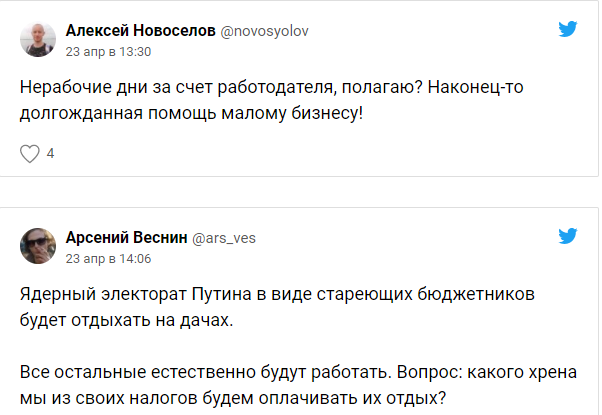 Одни обрадовались неожиданным выходным и побежали покупать билеты и бронировать отели. Или запланировали посадку картошки на приусадебном участке. Другие не поняли такой внезапности, которая нарушила все их планы.