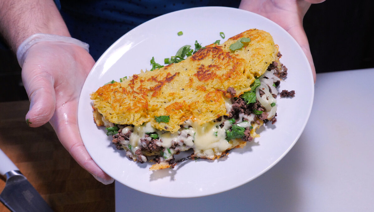 Потому что сегодня готовим просто мощную вкусовую и калорийную бомбу. Назову я ее условно "Чебудраник". Так сказать и драник, и чебурек в одном лице. Причем начинка будет с фаршем, зеленью и сыром!