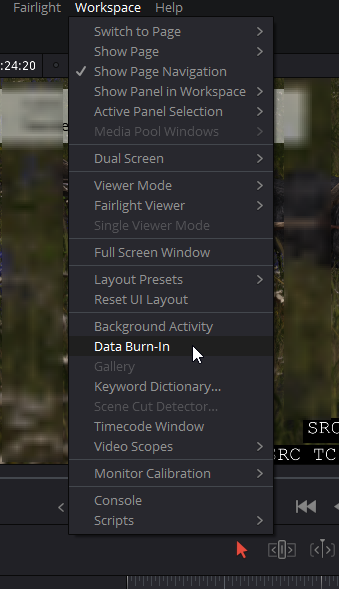 Davinci Resolve 17 Для профессиональной обработки материала в davinci resolve иногда требуется наличие тайм и фрейм кода, так можно легко отследить битые фреймы и точнее определять фронт работ. Так же это будет полезно для работы внутри пайп лайна. Что бы вывести метадату необходимо зайти в Workspace - Data-Burn In. Далее в этом окне необходимо выбрать тип данных и дизайн. Во вкладке Fusion они не отображаются, но записываются в рендер.