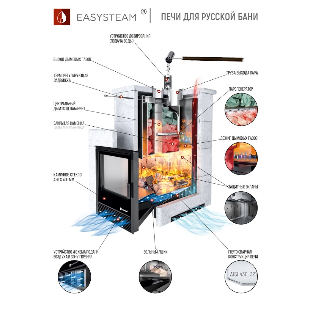 В этой публикации мы хотели бы поговорить о печах для режима настоящей русской бани, изготовленных из жаропрочной нержавеющей стали премиум класса, которые можно использовать под обкладку кирпичом или в облицовке из натурального природного камня трёх видов: талькохлорит, змеевик, пироксенит.