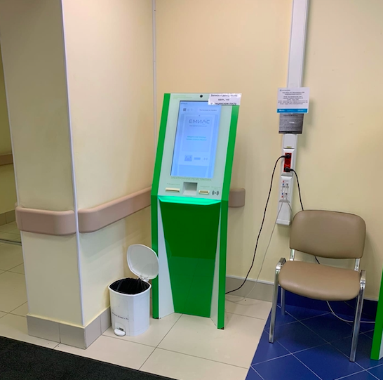 Поскольку поликлиника находится прямо рядом с нашим домом, мы решили на очередной прогулке заглянуть туда и записаться через аппарат или прямо через регистратуру.
