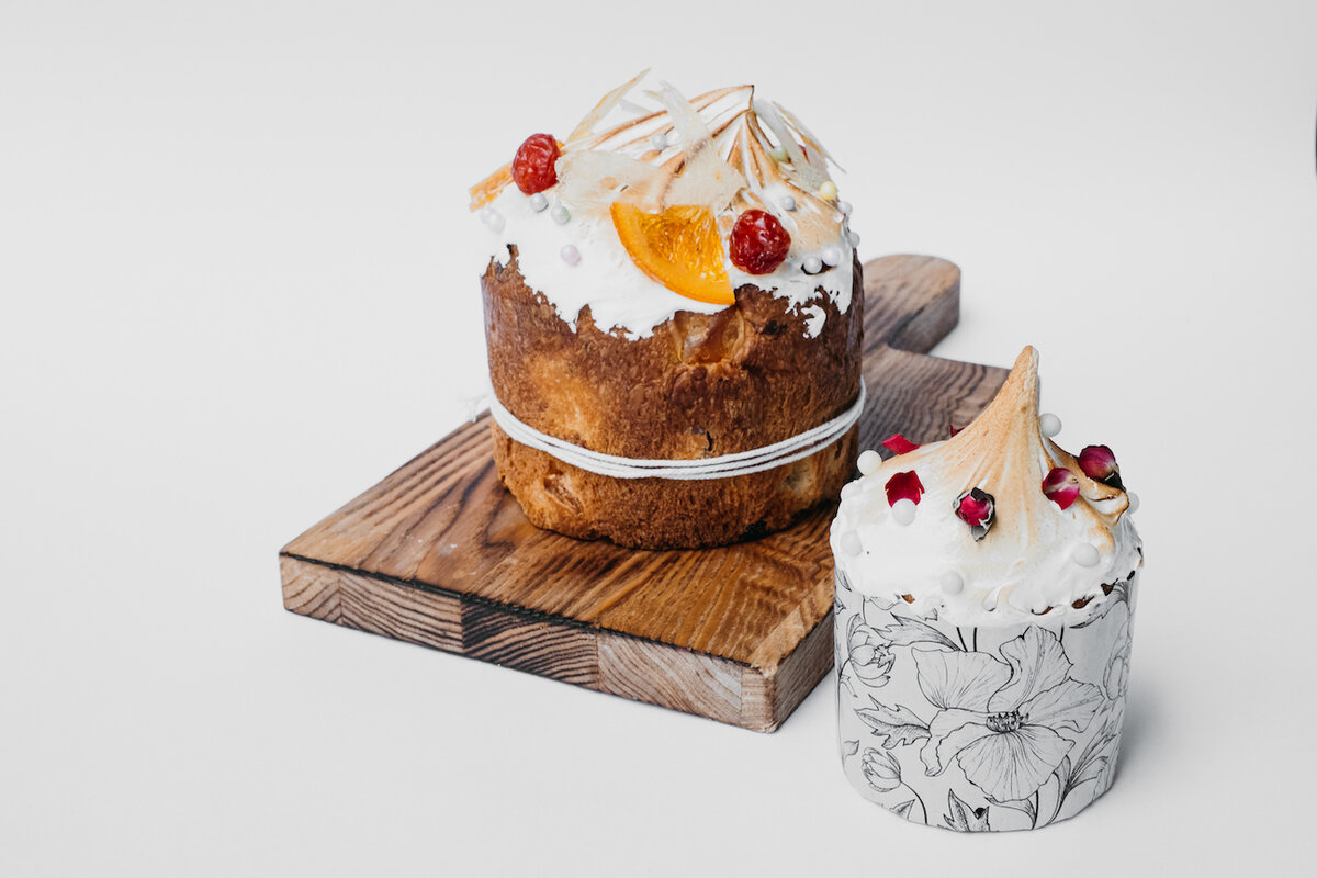 Ресторан Savva Тесто на куличи: Ингредиенты: Опара: На украшение: Приготовление: 1. За день до планируемого приготовления куличей, приготовить опару. Смешать все ингредиенты до однородности и эластичности, поставить в холодильник на 10-15 часов. Достать за 1,5 часа до начала работы с тестом и оставить при комнатной температуре на 1,5 часа. 2. Предварительно смешать молоко и дрожжи. Желтки смешать с сахаром, добавить муку с солью, затем влить молочно-дрожжевую смесь, перемешать. Хорошо вымешать и добавить опару. Вымешивать до однородной массы. 3. Далее постепенно влить сливочное масло. Вымешивать до однородности и гладкости теста. Затем добавить ваниль, цедру цитрусовых и сухофрукты. Поставить в теплое место на 1,5-2 часа. 4. Когда тесто настоится, его необходимо аккуратно обмять. Далее сформировать из него 3 шарика и разложить по формам. Снова поставить в теплое место до момента, когда тесто поднимется до верха формы. 5. Выпекать в разогретой до 160 градусов духовке в течение 25-30 м